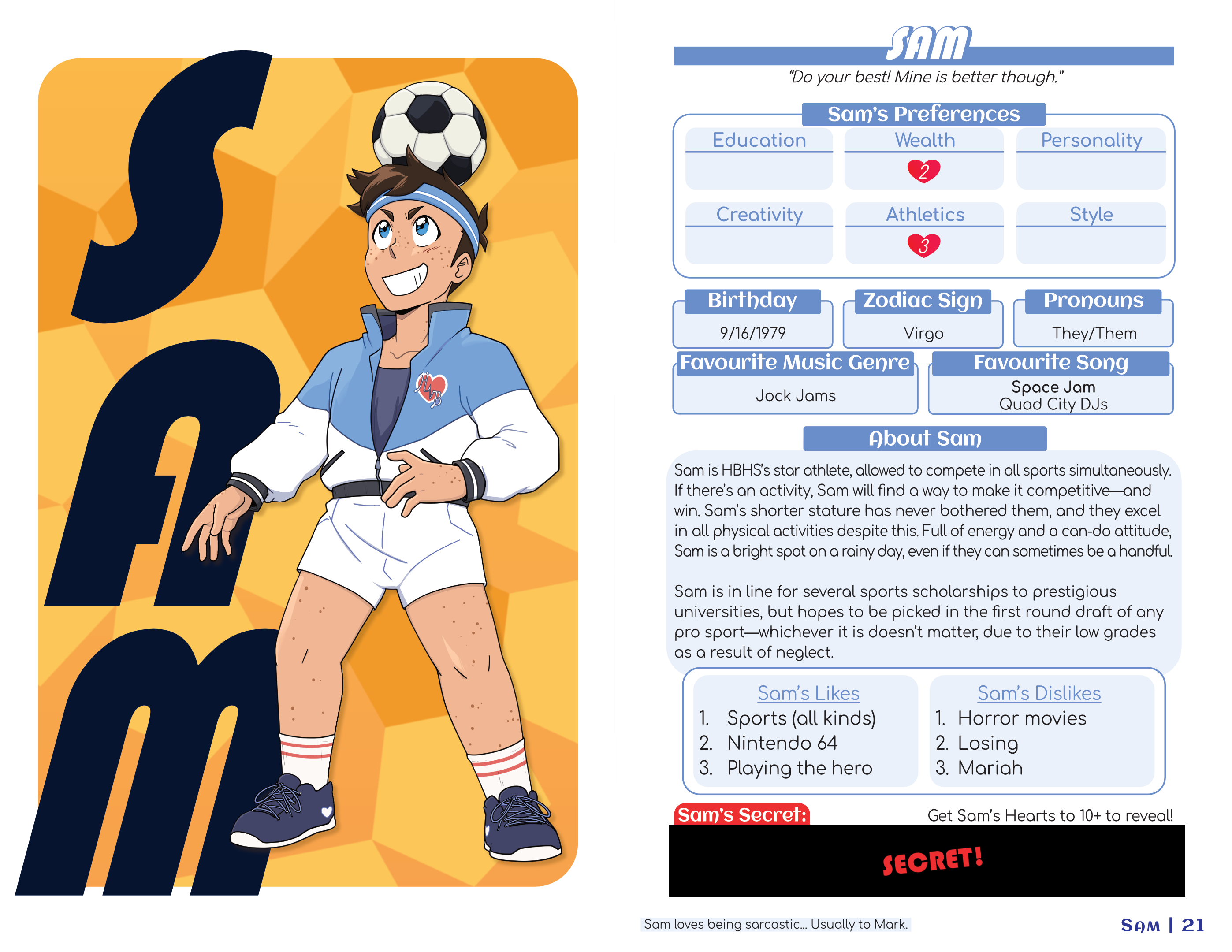 - Sixteen potential dating partners with detailed biographies and ~secrets~